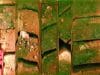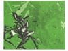 “These digital images are used as his ‘performative’ prints. They are ‘collected’ by hand with a custom-made scanner appendage and battery pack, often strapped around his neck, with which Stern scans images in straight, long lines across tables … swings over flowers, does pogo-like gestures over bricks, or just follows the wind over water lilies. The images become a digital archive from which Stern draws and selects and manipulates, to print with various photographic and inkjet processes.”