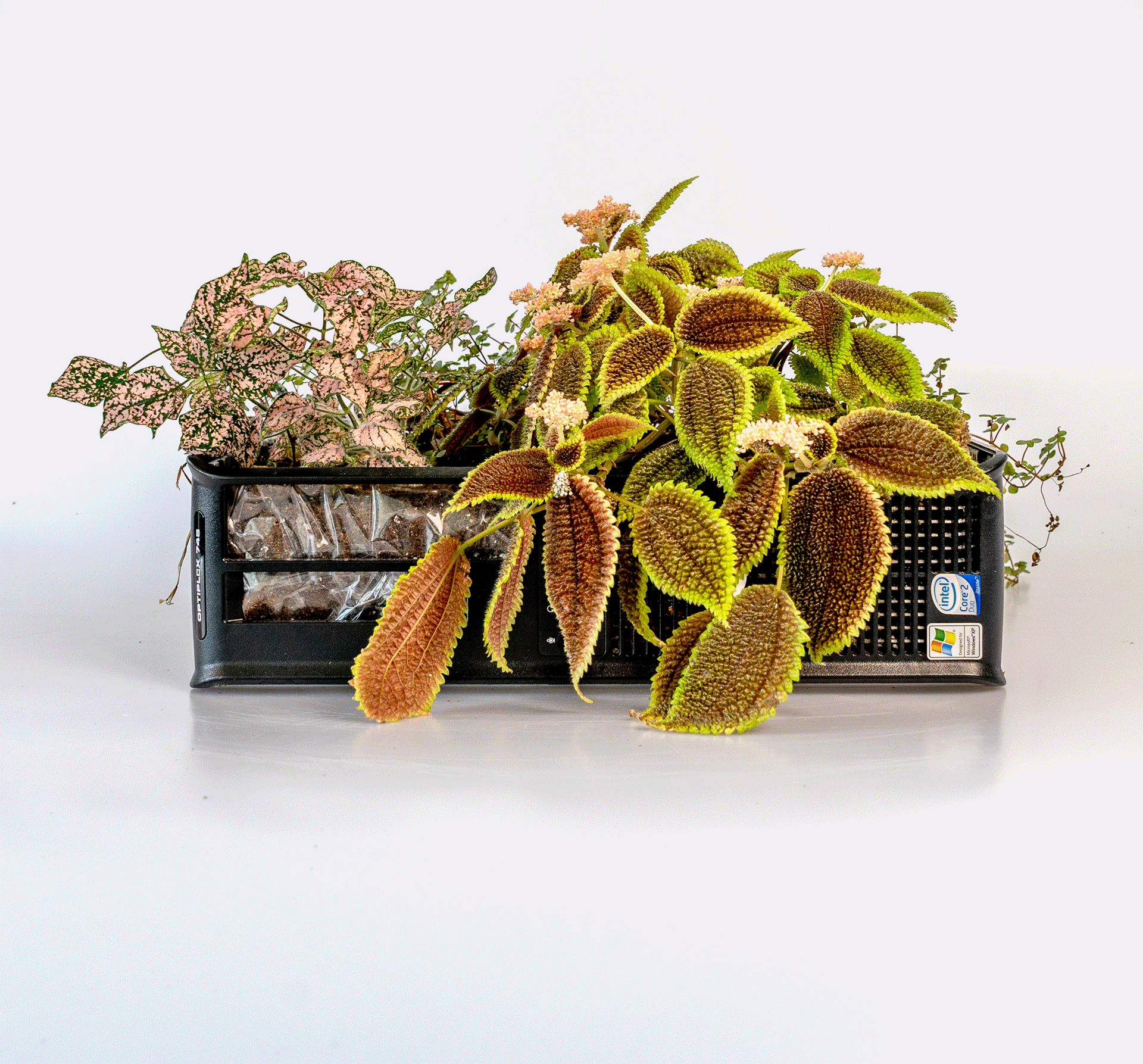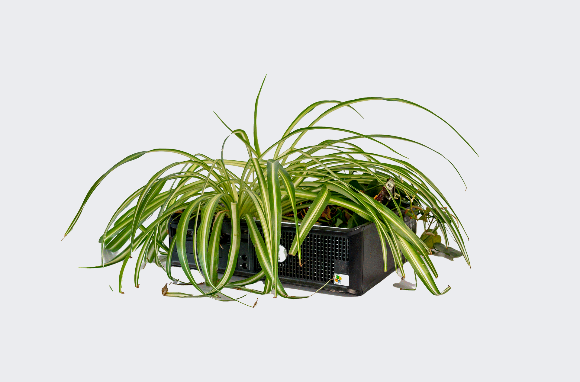 The World After Us also lives as a staged photographic and video NFT collection of temporary sculptures, which combine plant life with electronic waste, and scientific experimentation with artistic exploration. They take the forms of: electronic waste, reclaimed by plant life; fossilized and reconfigured phones and laptops; and reimagined and re-formed digital tools.